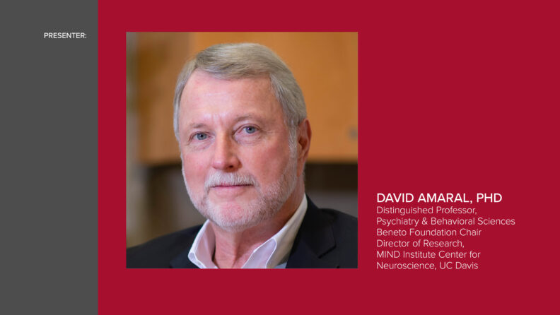 Presented by: David Amaral, PhD, Distinguished Professor, Psychiatry & Behavioral Sciences Beneto Foundation Chair, Director of Research, MIND Institute Center for Neuroscience, University of California, Davis