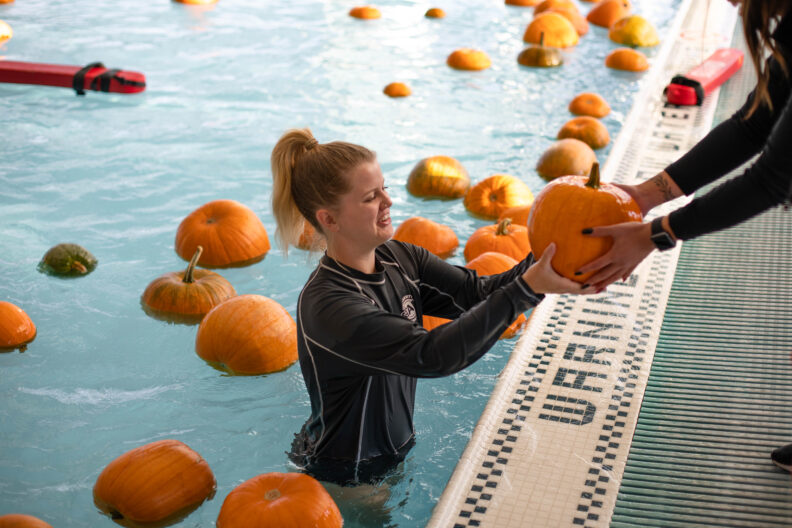 Come pick a pumpkin! SRC and Chinook members can pick a pumpkin for free from our AquaPatch. Get into the pool or our staff can hand a pumpkin to you. Decorating stations will be available for those who want to paint or carve.