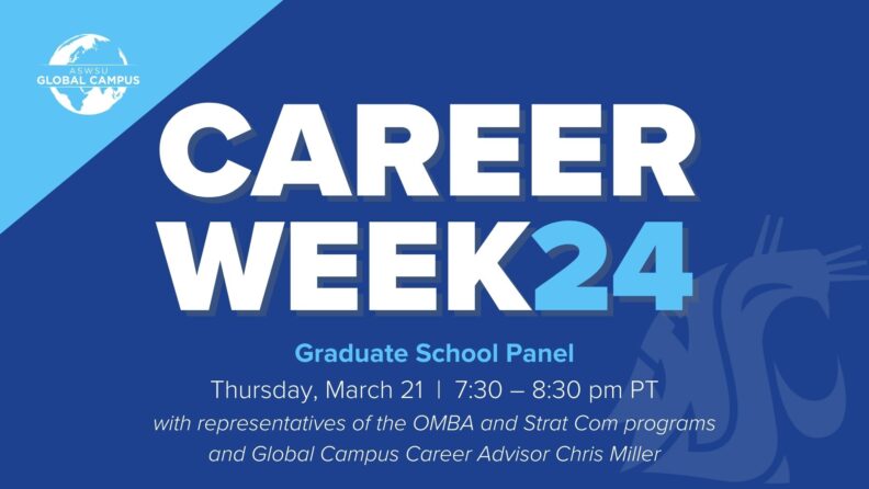 Are you interested in attending graduate school, but have questions about pursuing a program? Join us for the Graduate School Panel, where representatives of the OMBA and Strat Com programs will answer questions about the WSU Global Campus grad school experience.