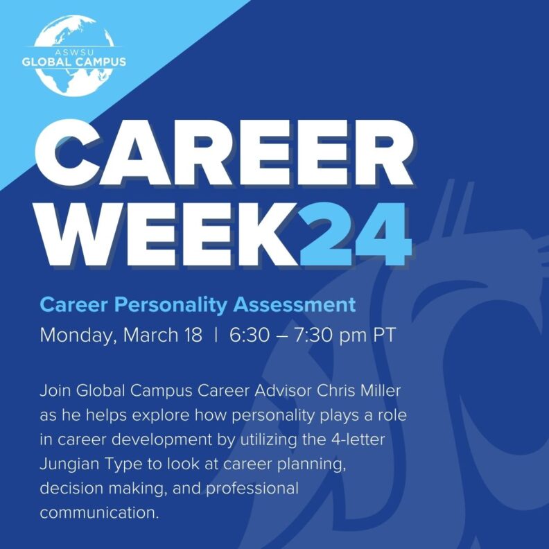 Join Global Campus career advisor, Chris Miller, as he helps explore how personality plays a role in career development by utilizing the 4-letter Jungian Type to look at career planning, decision making, and professional communication.