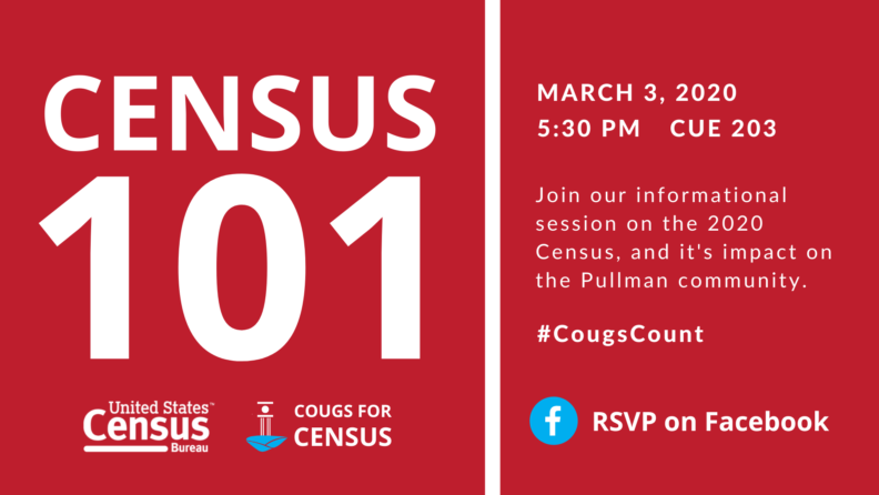 Curious about the 2020 Census? We’ve got you covered! Join the Cougs for Census team and our local census representative in answering all your questions on March 3 at 5:30 p.m. in CUE 203.