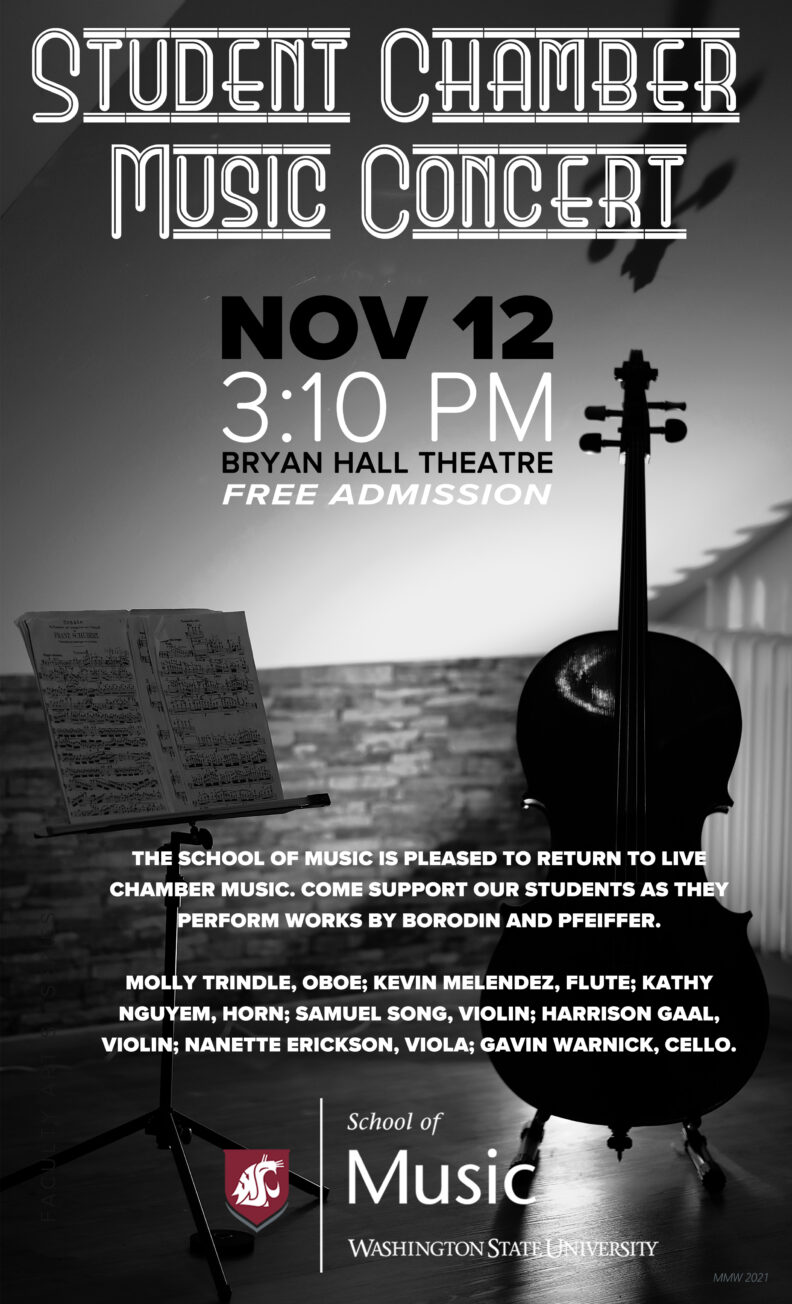 The School of Music is pleased to return to live chamber music. Come support our students as they perform works by Borodin and Pfeiffer.