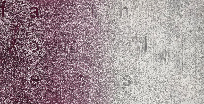 Kevin Haas is a contemporary artist who works in printmaking, drawing, and design. He is known for his prints in muted colors and coarse halftones, fragmented text phrases, and large print installations. Haas’s ongoing work explores themes of creative effort and permanence amid uncertainty and anxiety. Since 2000 he has taught courses on printmaking, design, and book arts at Washington State University, where he coordinates the printmaking studios and the Bookforms Library. Visit kevinhaas.com to learn more. Work by Haas is also featured in the current exhibition, “Your Collection: Faculty Remix”, on view January 14 through June 28, 2025.