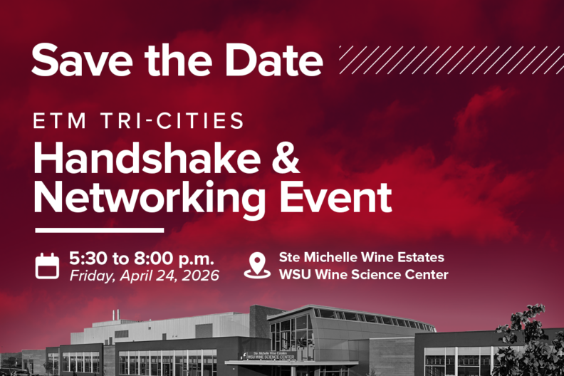 Washington State University’s Engineering and Technology Management (ETM) program invites current students, alumni, and prospective students to attend the Spring 2026 Tri‑Cities Handshake Reception. This event provides an opportunity to engage with ETM faculty and staff, strengthen professional connections, and learn more about the academic and career pathways supported by the program.