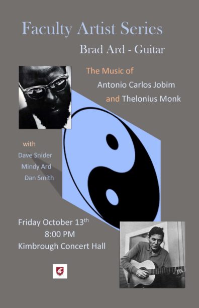 Faculty Artist Series: Brad Ard, guitar; The Music of Antonio Carlos Jobim and Thelonius Monk Friday, October 13, 2017 - add to calendar 8-10 pm 0-$10 About the event Contact School of Music sandra_albers@wsu.edu (509) 335-4148