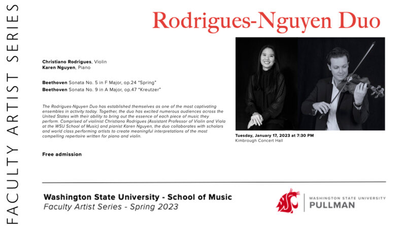 A Faculty Artist Series featuring Christiano Rodrigues, violin and Karen Nguyen, piano.