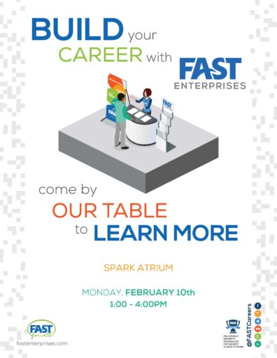 Stop by FAST Enterprises table in Spark Atrium to hear more about the company and career opportunities they have for Cougs!