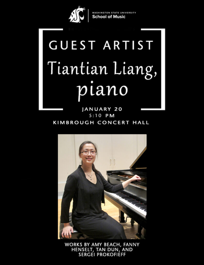 Dr. Tiantian Liang, from Tennessee State University, will present a solo recital with piano works by lesser-known and popular composers. The program opens with Fantasia Fugata by Amy Beach, followed by a selection of pieces from the charming set The Year, a true gem not only among Henselt’s works, but in the Romantic piano literature. The third work on the program is Eight Memories in Water Color by living Chinese composer Tan Dun, a collection that blends Impressionist influences with element from traditional Chinese music. The intense second sonata by Prokofiev will close the recital. This program, a journey beginning in the US, then going to Germany and China, and finally ending in Russia, will shed light on music by composers from different eras and backgrounds.