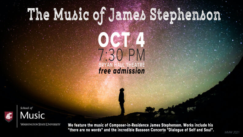We feature the music of Composer-in-Residence James Stephenson. Works include his “there are no words” and the incredible Bassoon Concerto “Dialogue of Self and Soul”.