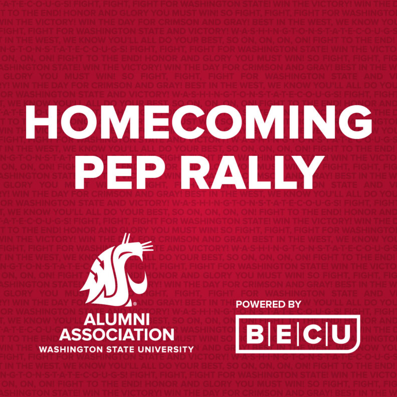 This fall, the WSUAA is partnering with ASWSU, IFC/Panhellenic, and the Student Entertainment Board to bring you a reimagined Homecoming experience! The Homecoming Pep Rally powered by @BECU will take place on the Lewis Alumni Centre lawn, complete with fan interaction, local celebrities, WSU Athletics coaches and student-athletes, live music, local food vendors, a beer garden, and so much more. Learn more at alumni.wsu.edu/homecoming!