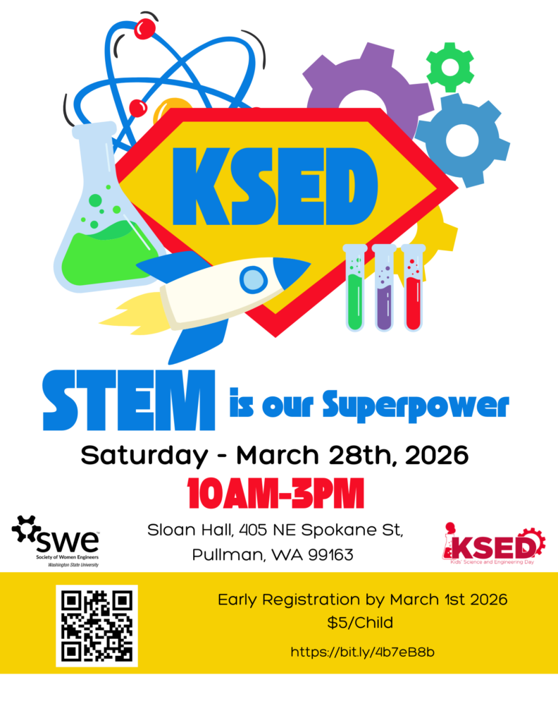 We’re thrilled to inform you that the 17th annual KSED is just around the corner, and we wouldn’t want you to miss out on the fun! Join us on Saturday, March 28th, between 10 AM and 3 PM in Sloan and Dana Hall WSU Pullman campus. The event promises an exciting lineup of STEM-related activities hosted by WSU clubs, captivating Planetarium shows scheduled from 11 AM to 2 PM, and complimentary event t-shirts for those who pre-register by March 1st. This event is advertised for K-5 to attend, but we have plenty of space for WSU students who would like to volunteer at this event!