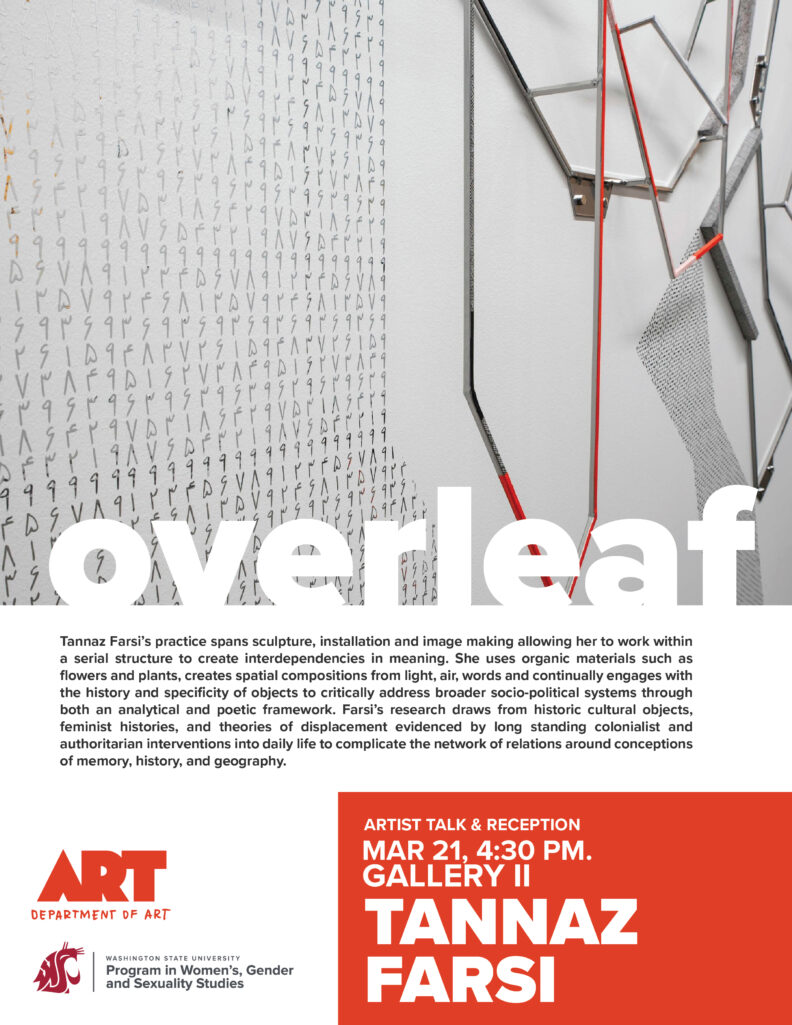 Farsi’s work has been exhibited at venues including SFAC Galleries, San Francisco; Portland Institute of Contemporary Art, Portland; Disjecta Art Center, Portland; Linfield Gallery McMinnville; Pitzer College Art Galleries, Claremont; Tacoma Art Museum, Tacoma; the Urban Institute of Contemporary Art, Grand Rapids; Delaware Center for the Contemporary Arts, Wilmington; and The Sculpture Center, Cleveland. She has been granted residencies at Bemis Center for Contemporary Art, Ucross Foundation, MacDowell Colony, Studios at Mass MOCA, Santa Fe Art Institute and the Rauschenberg Foundation. Her work has been supported through grants and awards from the Oregon Arts Commission, National Endowment for the Arts, University of Oregon and the Ford Family Foundation. She received a Hallie Ford Fellowship in 2014 and was named the twenty-eighth Bonnie Bronson Fellow in 2019. Born in Iran, Farsi lives in Eugene, Oregon where she is on faculty at the University of Oregon. Past Hockenhull lecturers have been visual artists, poets, and performance artists who emphasized the important connections between art, social justice and political practice. They include Octavia Butler, Coco Fusco, the Guerrilla Girls, Anna Chavez, Faith Ringgold, Jaune Quick-to-See Smith, Ayana Jackson, Marie Watt, and Jin-me Yoon.
