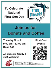In celebration of National First-Gen Day, Voiland College will be hosting a Donuts and Coffee event in Dana Hall 149!