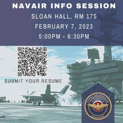Learn about a civilian career at the NAVAIR Info Session, 5-6:30 p.m., Tuesday, February 7, Sloan Hall 175.
