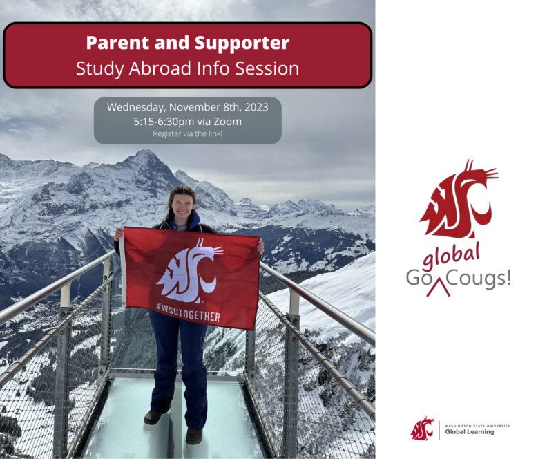 Is your student interested in studying abroad while they’re a Coug? Come to our virtual info session to learn more about the study abroad process and how you can help them prepare!