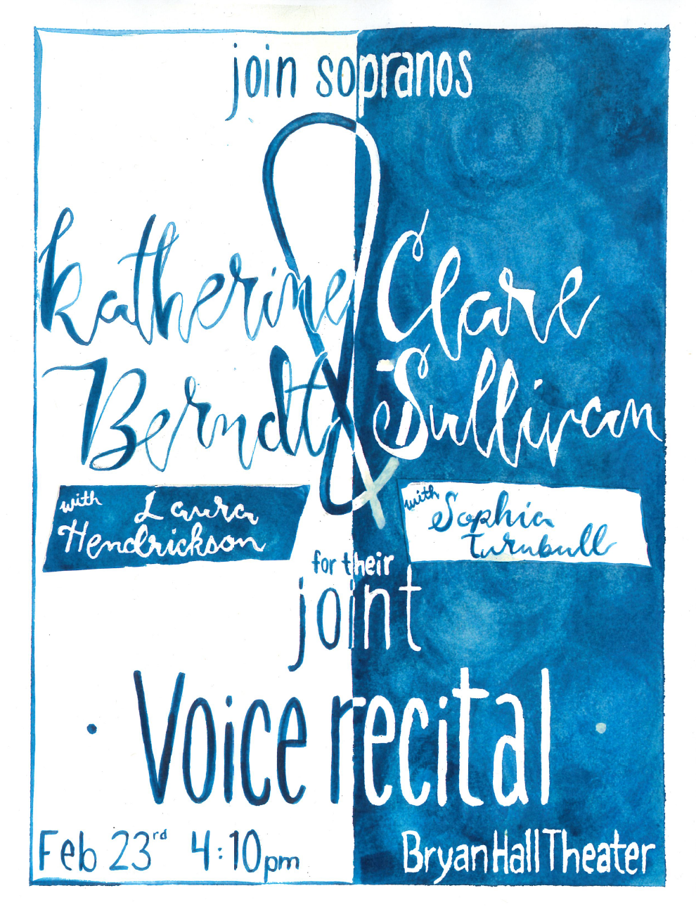 Performance Student Recital: Katherine Berndt, soprano and Clare Sullivan, soprano Friday, February 23, 2018 - add to calendar 4:10-5 pm About the event Contact School of Music sandra_albers@wsu.edu (509) 335-4148