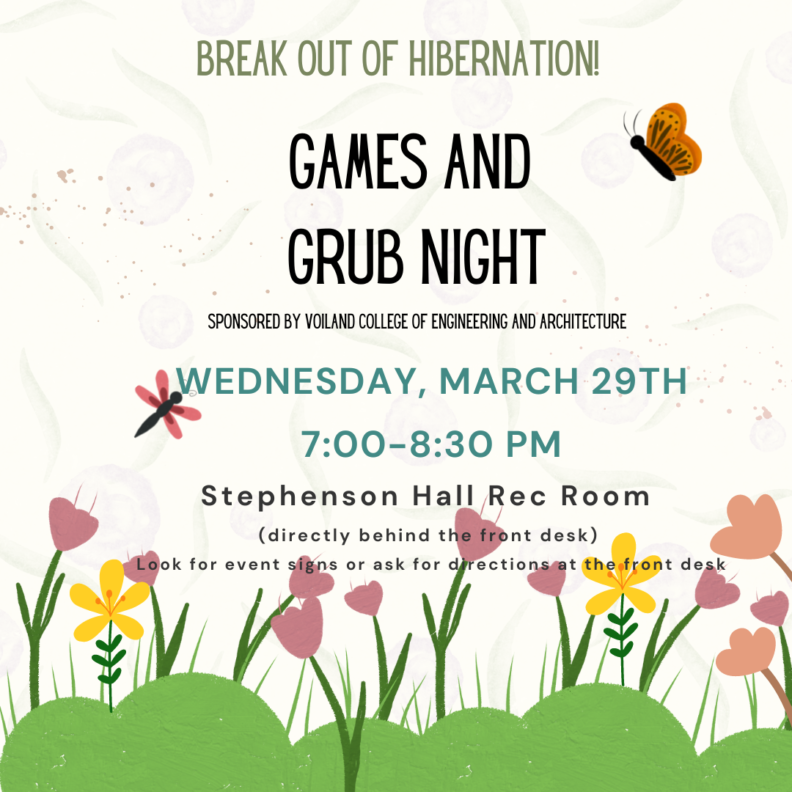 Join other Voiland College of Engineering and Architecture students in an evening of board and card games, a variety of snacks and treats, and socializing with students with similar academic interests.